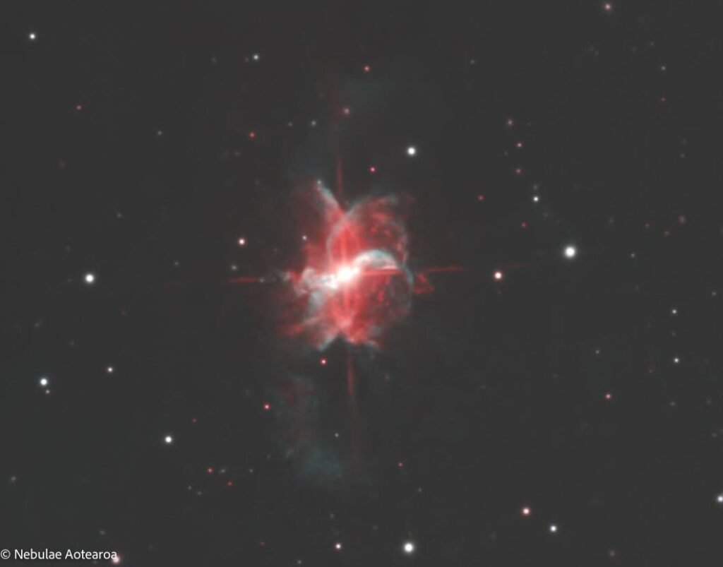 The images here are HOO images of that system processed in pixinsight from data that was collected on my Quattro F4 12” Newtonian at 1200mm on an EQ8RH-Pro mount with a QHY268M camera and filterwheel. The object is very small so the image below has been severely cropped